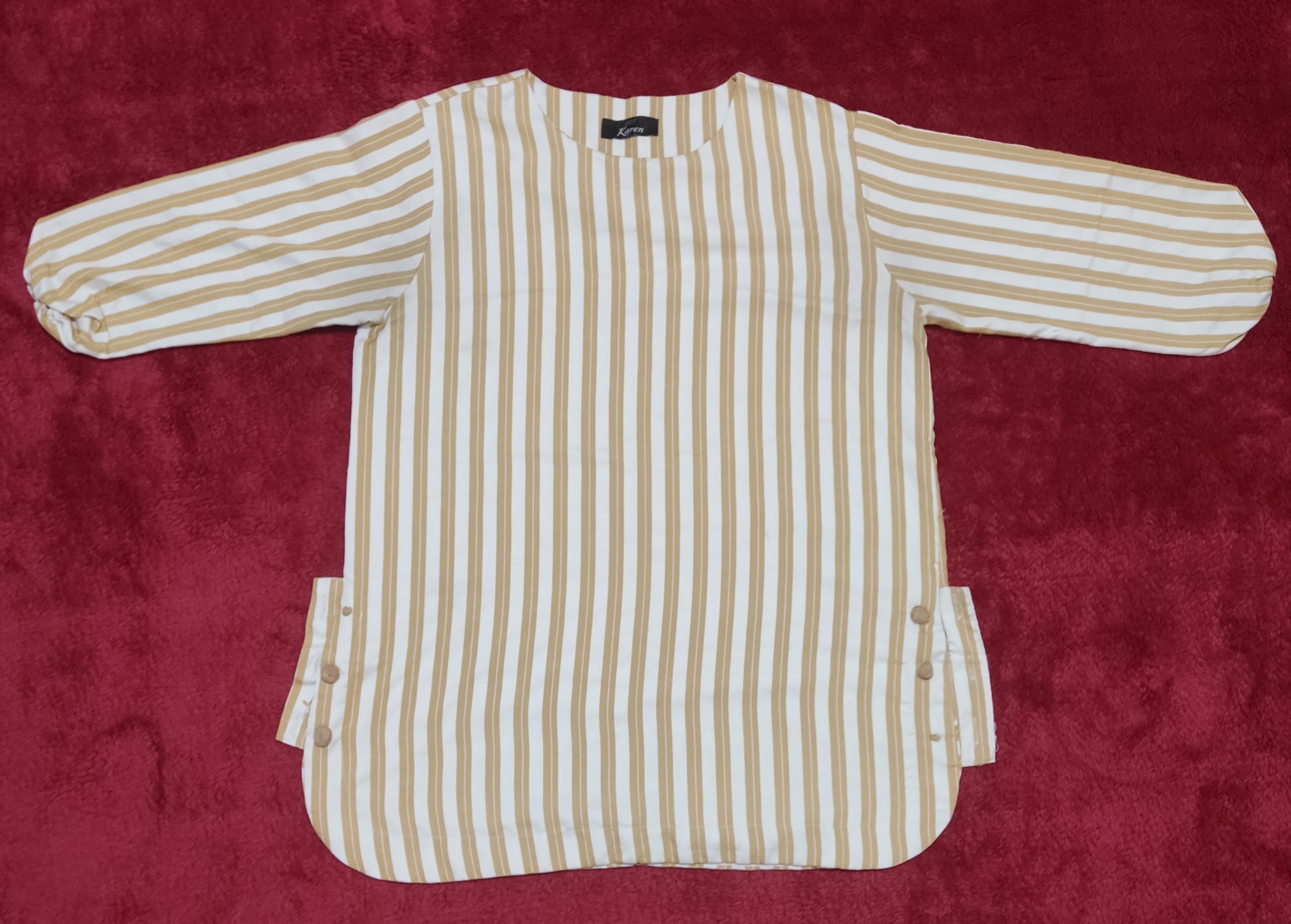 تونیک مانتویی راه راه سفید نسکافه ای زنانه دست دوم